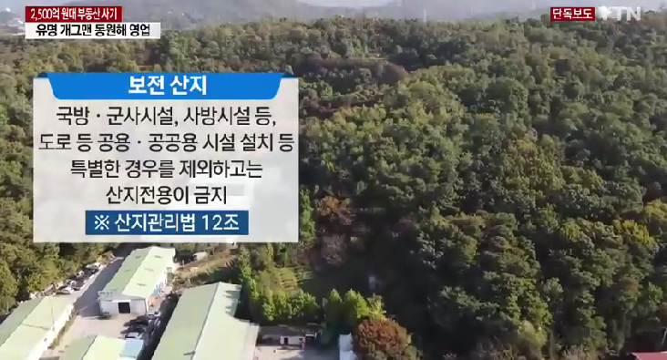하지만 태연 측이 매입한 땅은 군사나 공공시설이 아니면 용도를 바꿀 수 없도록 지정된 산야라고 하는데요, 산림보전법상 '보전 산지'로 묶인 상태라 사실상 개발이 불가능한 땅이었습니다.