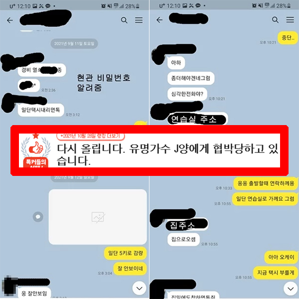 유명가수 j양 인플루언서 협박 폭로 (+카톡)