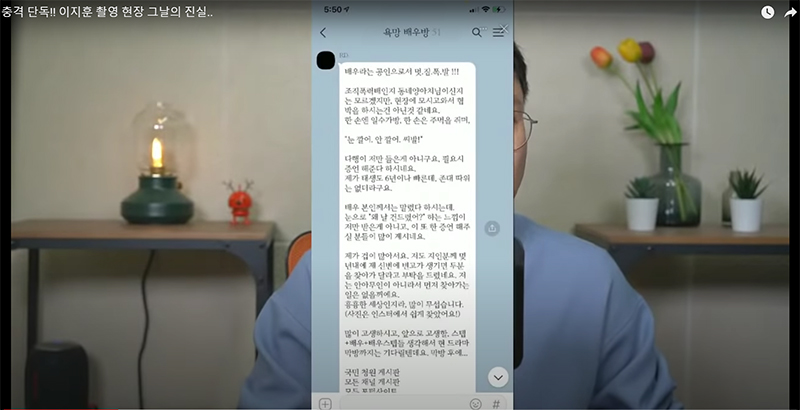 이와 관련해 유튜버 이진호가 '충격 단독!! 이지훈 촬영 현장 그날의 진실'이라는 제목의 영상을 공개했습니다.