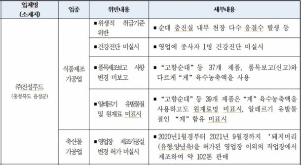 순대 공장 벌레 위생불량 업체 리스트 (+진성푸드 납품어디)