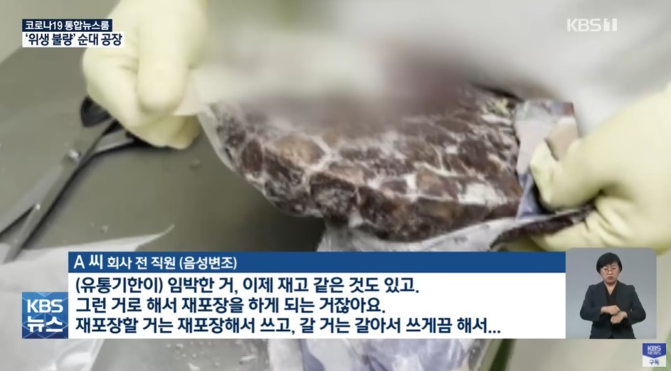 순대 공장 벌레 위생불량 논란