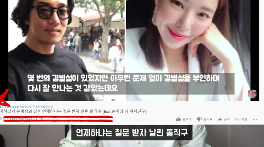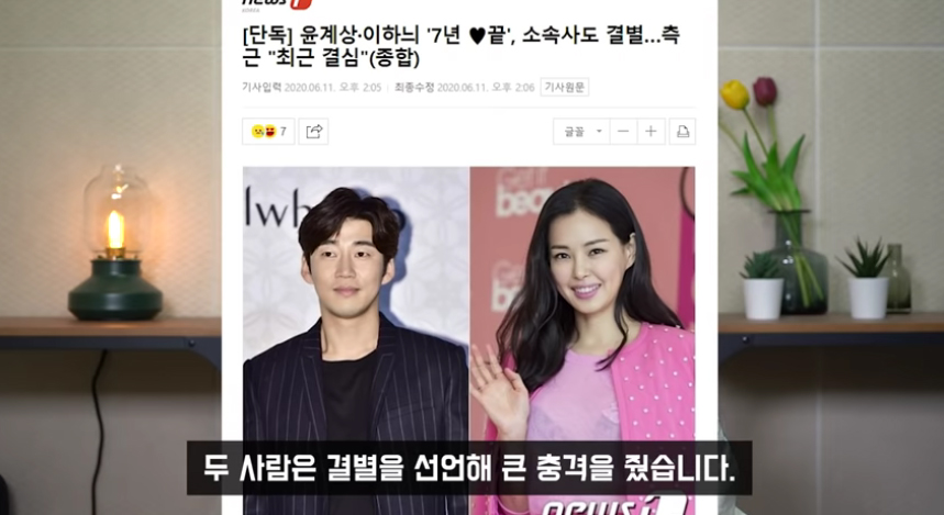 유튜버 이진호는 "윤계상 이하늬는 7년간의 공개 연애를 이어오며 연예계 대표 커플로 인식되다 결별을 선언해 큰 충격을 줬다"고 설명했습니다.