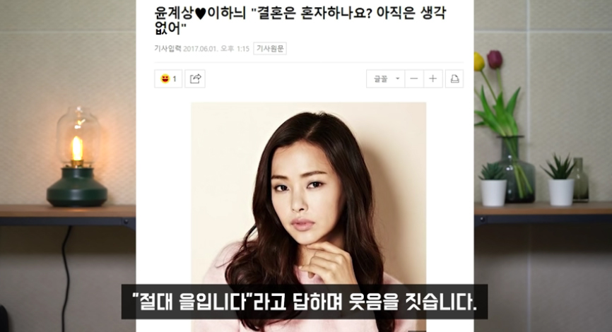 이어 "윤계상이 지인들에게는 결혼에 대한 의중을 종종 드러냈다고 한다. 하지만 이 부분에 대해 동의하지 않은 쪽은 이하늬였다"고 주장하며, "이하늬의 '결혼은 혼자 하나요?'라는 말은 이하늬 집안을 두고 한 말이었을 가능성이 높다"고 주장했습니다.
