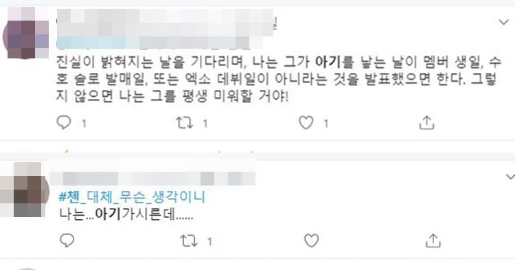 첸의 갑자기스러운 결혼 발표에 일부 팬들은 축하를 보냈지만 대부분의 팬들은 패닉 상태에 빠졌는데요, 이에 몇몇 팬들은 성명서를 내고 첸의 탈퇴를 요구하기도 했습니다.