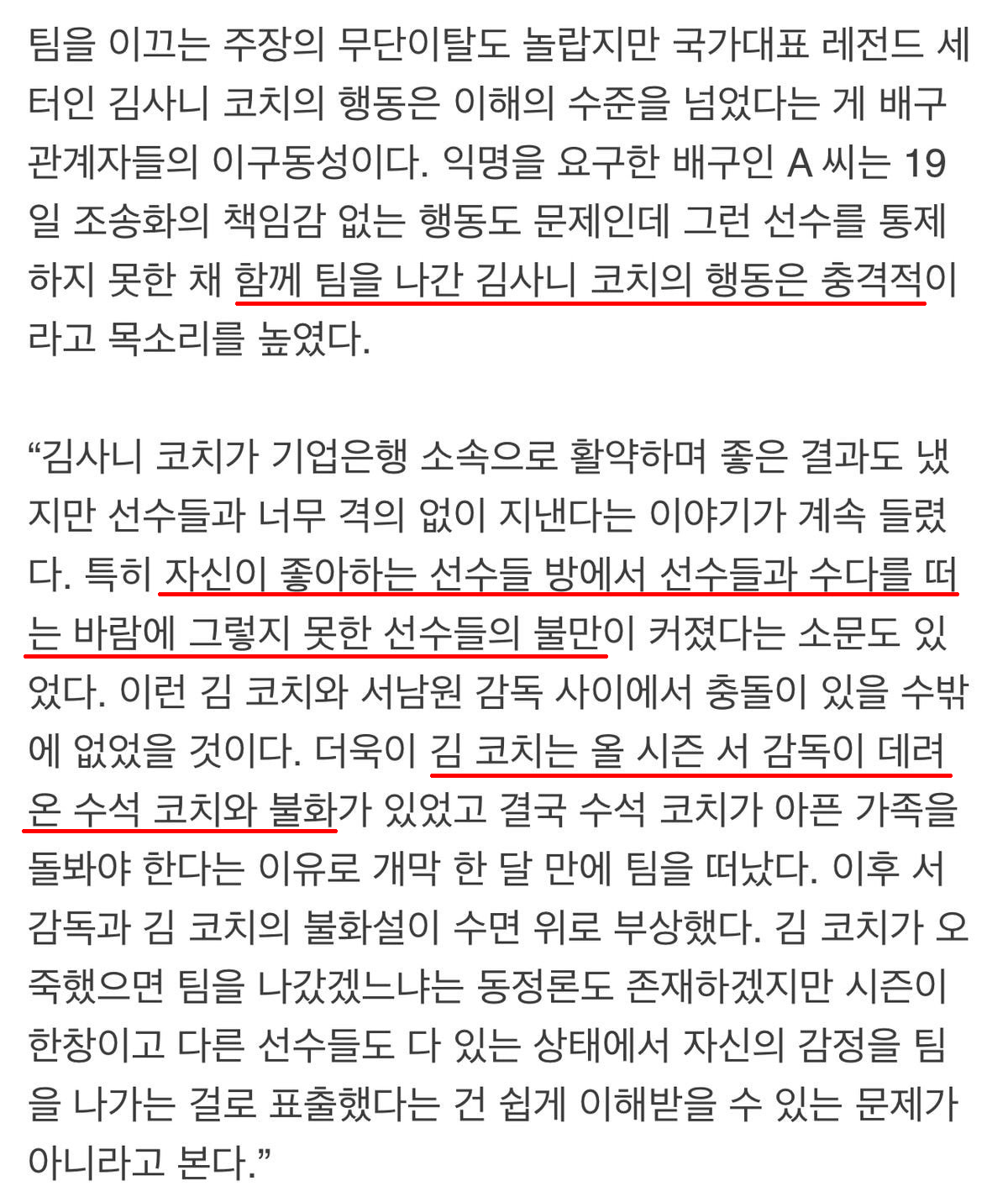 하지만 16일 페퍼저축은행전이 끝난 뒤 또다시 팀을 무단이탈했는데요, 이에 김사니 코치마저 사퇴 뜻을 밝히며 이탈했습니다.