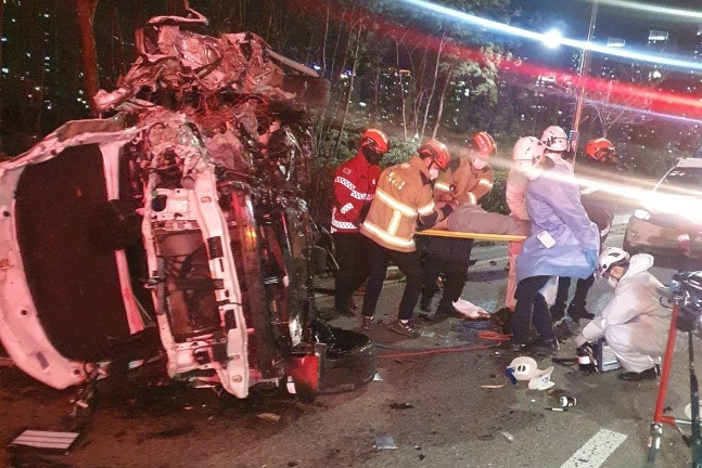 이 사고로 차량이 옆으로 넘어져 전복됐고 운전자인 전직 프로야구 선수 김동은은 119구조대에 의해 인근 병원으로 옮겨지던 중 사망한 것으로 전해졌습니다.