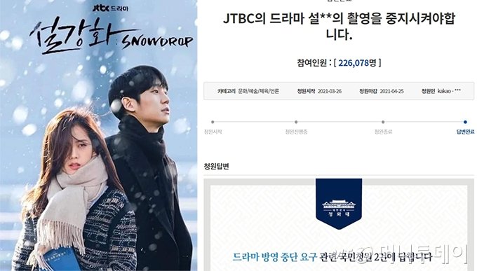 설강화 국민청원 폐지 요구 빗발쳐 (+첫방송, 작가)