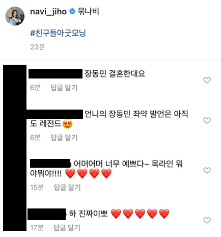 장동민의 결혼 소식에 과거 연인이었던 가수 나비의 발언이 재조명되며 나비의 인스타그램에도 불미스러운 댓글이 달리고 있습니다.