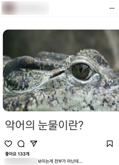 또한 방송에서 눈물을 흘린 정자를 겨냥하는 듯이 '악어의 눈물' 사진을 올리며 "보이는게 전부가 아니다"라는 글을 적기도 했습니다.