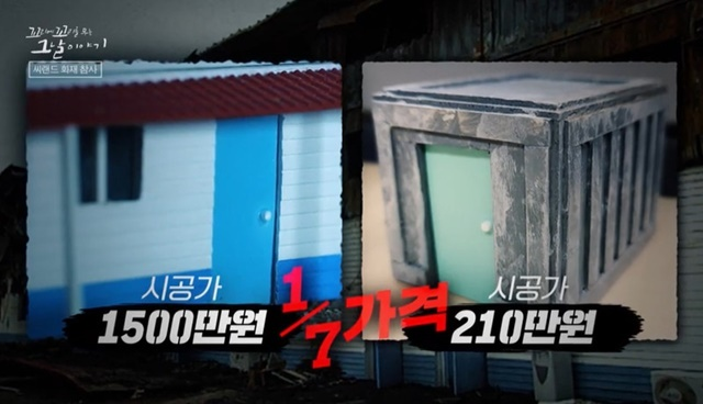 지붕은 철판 사이에 샌드위치 패널로 되어있었으며, 벽은 스티로폼에 합판을 붙이고 거기에 벽지를 붙여 모형을 만들었던 것인데요, 씨랜드 원장은 이 같은 구조에 돈을 아끼기 위함이라고 밝혀 더욱 분노를 자아냈습니다.