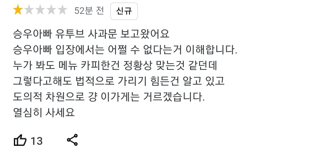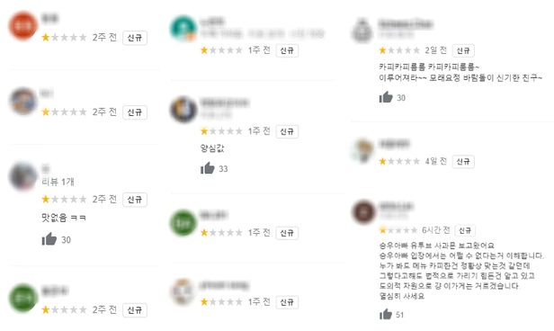 해당 영상이 올라가자 네티즌들은 빠르게 업체를 특정해 냈습니다. 표절 가게로 낙인이 찍힌 업체는 별점 테러가 뒤따랐습니다. 영상이 올라온 뒤 리뷰사이트에서는 네티즌들이 최하점을 줬고, 일부 네티즌들은 "표절해서 가게 내니 좋으냐"등의 글을 남겼습니다.
