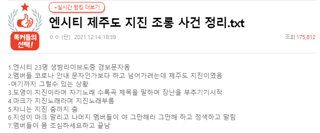 엔시티(NCT) 제주도 지진 조롱 논란 (+영상)