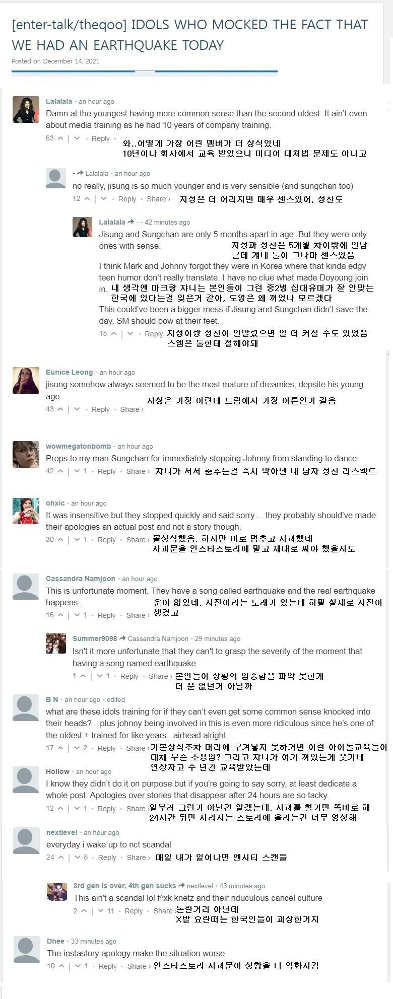 엔시티(NCT) 제주도 지진 조롱 논란 반응