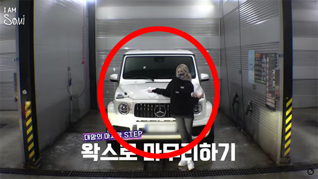 이후 전소미의 흰색 차량이 세차장으로 들어섰는데요, 제작진은 자막으로 'In my G65'라고 소개했습니다. 전소미가 최근 발표한 노래 'XOXO'에도 'In my G65'란 가사가 등장하는데 전소미의 차를 가리켰던 것입니다.