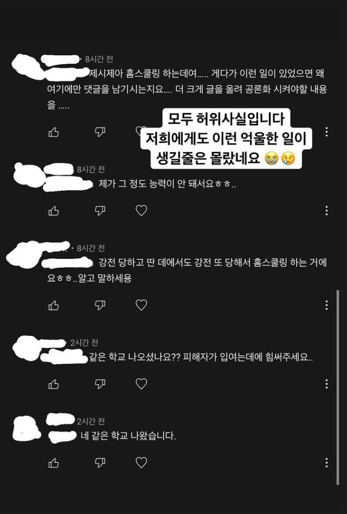 이재시도 자신의 인스타그램을 통해 "모두 허위사실입니다. 저희에게도 이런 억울한 일이 생길줄은 몰랐네요"라며 해명글을 남겼습니다.