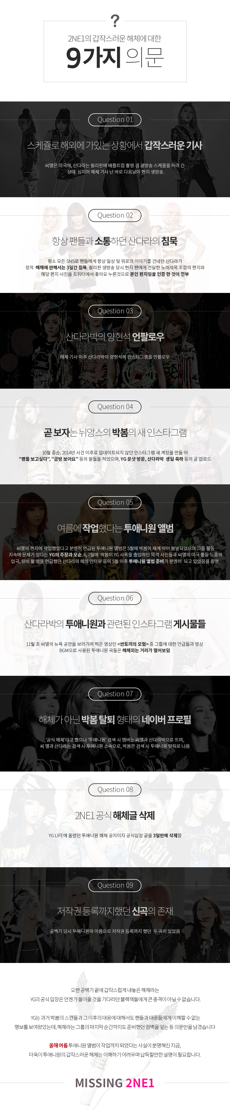 한 온라인 커뮤니티에서는 투애니원(2NE1) 해체와 관련해 9가지 의문점을 제시했습니다.