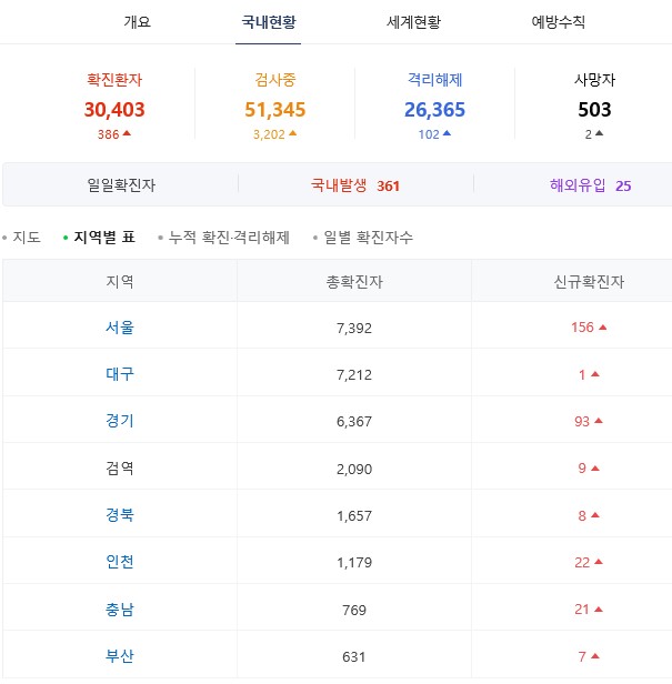중앙방역대책본부는 이날 0시 기준으로 코로나19 신규 확진자가 386명 늘어 누적 3만403명이라고 밝혔습니다. 전날 (363명)과 비교해 23명 증가했습니다. 또한 신규 확진자 386명은 8월27일(441명) 이후 86일만에 최다 기록입니다.