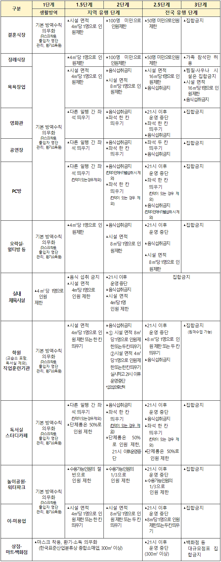 <사회적 거리두기 2단계 달라지는 것>