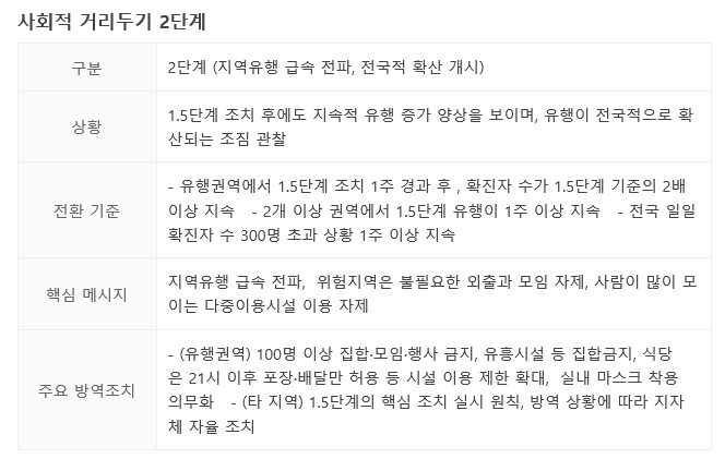 <사회적 거리두기 2단계 상향 기준>