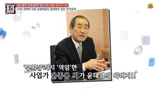 윤태영은 윤종용 전 삼성전자 부회장의 아들로, 미국 일리노이주 웨슬리안대학에서 경영학과를 졸업한 재원인 것으로 알려졌습니다. 윤태영이 부친에게 물려받은 재산만 450억 원대로 전해졌으며 아버지를 도와 사업을 한 것으로도 알려졌습니다.