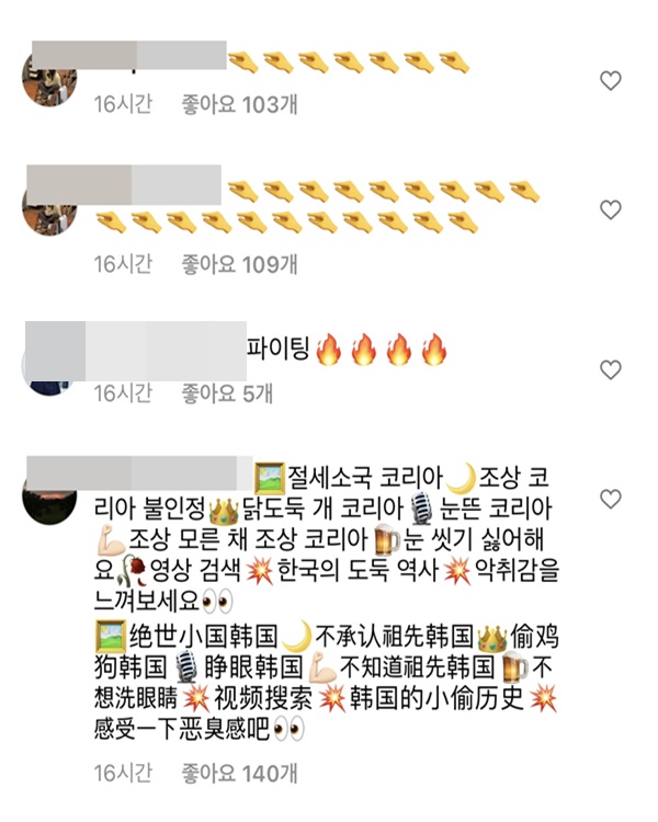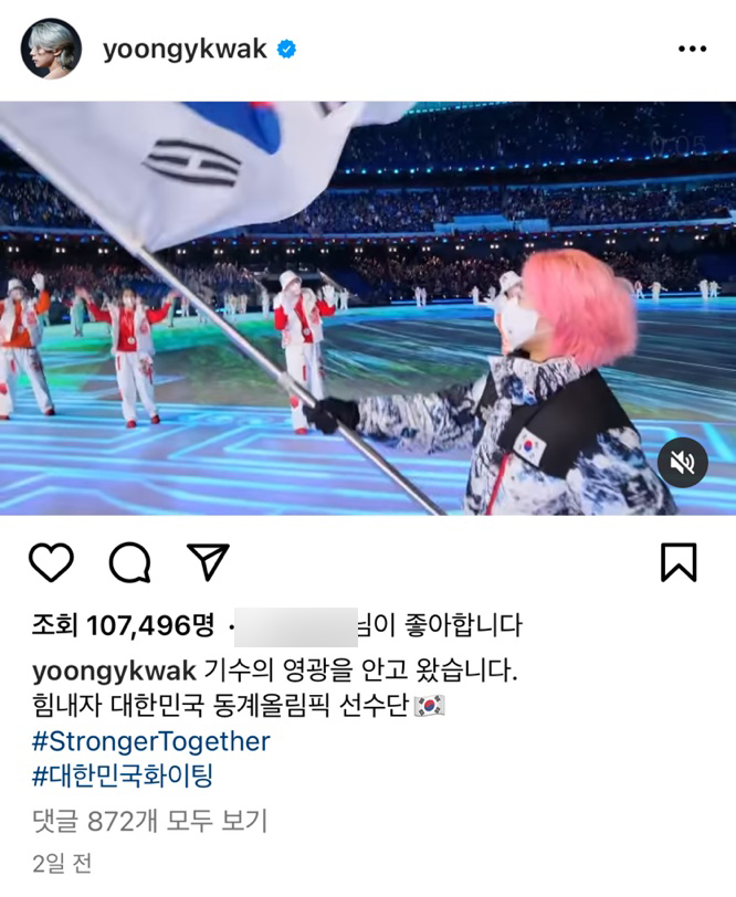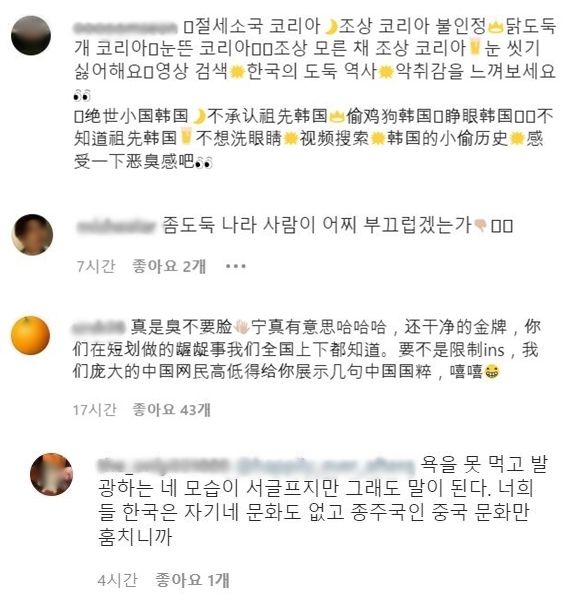 곽윤기가 인스타에 올린 베이징올림픽 개회식에서 한국 대표팀 기수로 참여해 태극기를 흔드는 짧은 영상에도 중국어와 영어로 입에 담기 힘든 욕설을 남겼습니다.