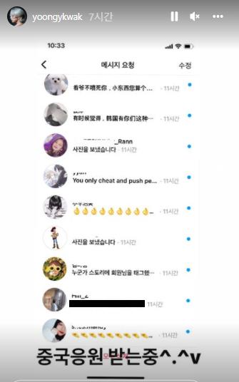 곽윤기는 지난 5일 자신의 인스타 계정에 중국 팬들이 보낸 다이렉트 메시지(DM)를 공개하며 "중국의 응원받는 중"이라고 밝혔습니다.