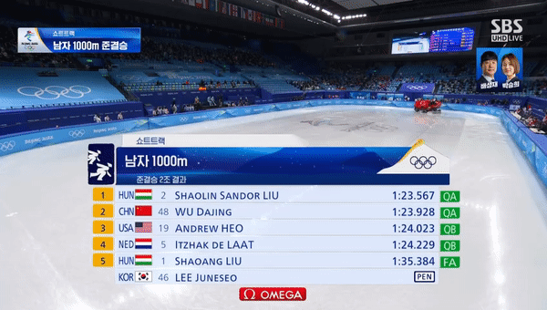 베이징 동계올림픽 쇼트트랙 편파판정 논란 (+영상)