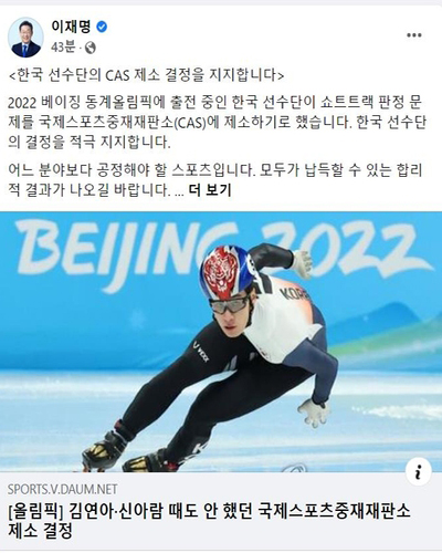 이재명 더불어민주당 대선 후보는 "베이징 동계올림픽 쇼트트랙 편파판정에 실망과 분노를 금할 수 없다"고 밝혔으며, 정용진 신세계 부회장은 쇼트트랙 편파판정 논란에 대해 "할 많은 많지만 하지 않겠다(할많하않)"며 분노를 드러냈습니다.