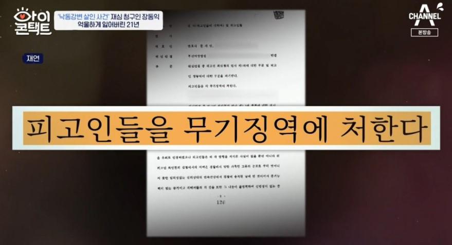 25일 방송된 채널A '아이콘택트'에서는 '낙동강변 살인사건' 범인으로 지목돼 21년간 옥살이를 한 장동익 씨가 막내동생과 눈 맞춤을 가졌습니다. 사건을 담당한 재심 전문 변호사 박준영이 이날 스페셜 MC로 참여했습니다.