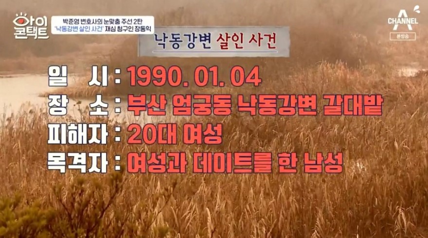 '낙동강변 살인사건'은 1990년 1월 4일 부산 엄궁동 낙동강변 도로상에서 차량에 타고 있던 여성이 성폭행을 당한 뒤 살해되고 함께 있던 남성은 격투 끝에 도망친 사건입니다. 당시 장동익 씨는 경찰 고문에 의한 허위 자백으로 무기징역을 선고받고 옥살이를 했습니다.