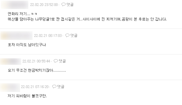 부산 기장 연화리 횟촌(해녀촌) 잔반 재탕 논란 (+어디, 보배드림)