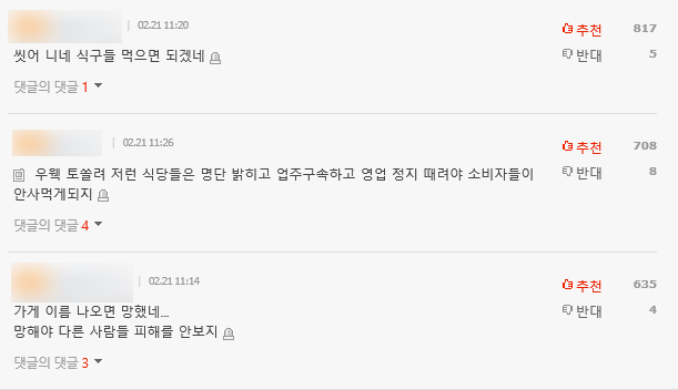 이를 본 누리꾼들은 "자주 갔는데 다신 안 간다", "요즘 같은 시대에 해도 너무하다 저런 식당은 영업하면 안된다" 등의 반응을 보였습니다.
