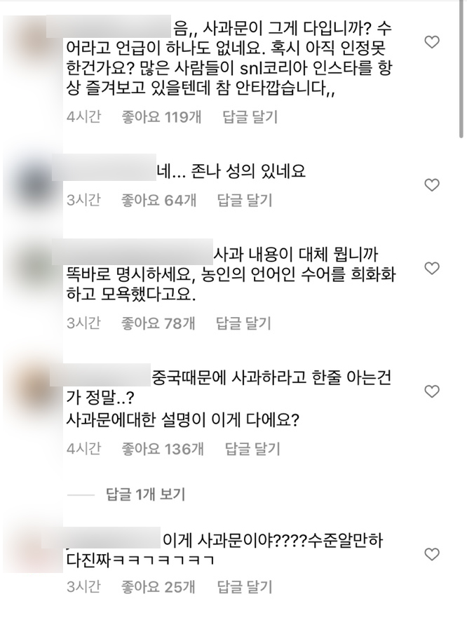 SNL 코리아 수어(수화) 비하 논란 사과 (+네티즌 반응)