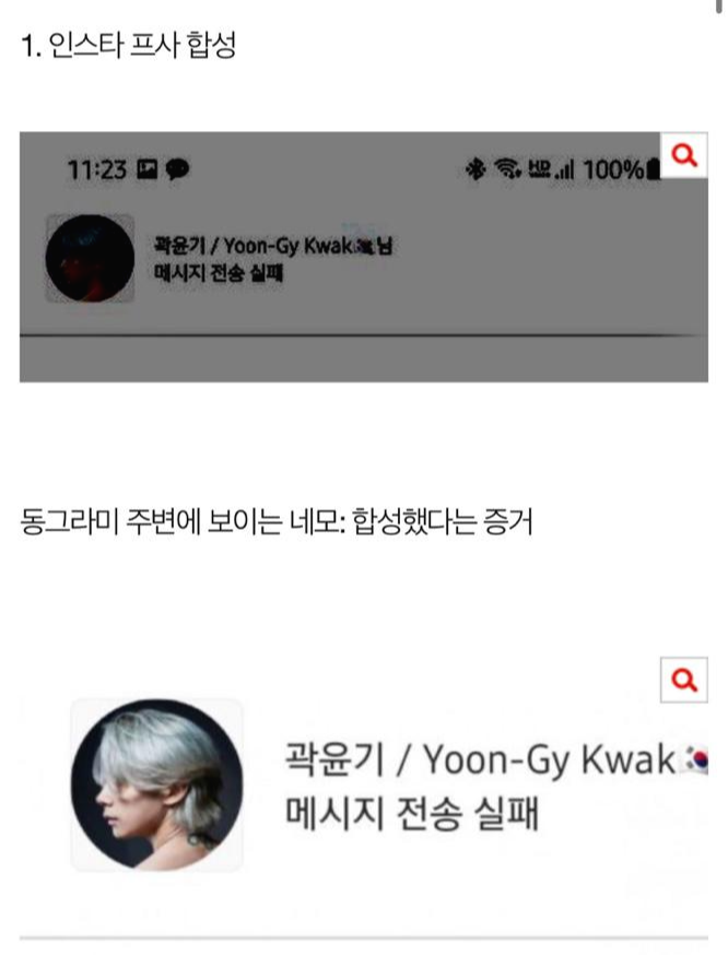 특히 곽윤기에게 사과를 요구한 다이렉트 메시지 화면이 네티즌들의 의해 합성으로 밝혀지면서 글쓴이의 주장은 점점 설득력을 잃었습니다.