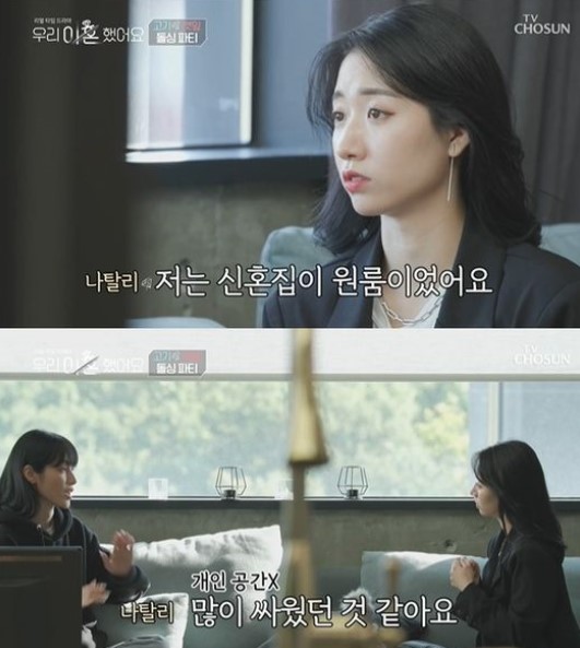 유깻잎은 "우리랑 비슷한 시기에 이혼했다고 들었다"고 물었고, 배수진(나탈리)은 "맞다. 난 이혼 후 성격이 많이 바뀌었다. 원래 부정적인 사람이었는데 긍정적으로 바뀌고, 많이 행복해졌다"며 "신혼집이 원룸이었다. 방이 하나고 거실도 없었다. 그것 때문에 많이 싸웠다. 초반에 개인 공간이 있었다면 덜 싸우지 않았을까 싶더라"고 고백했습니다.