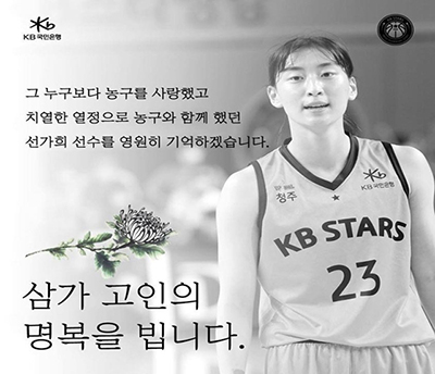 여자 프로농구 선수 KB스타즈 소속 선가희가 향년 22세의 나이로 사망했습니다.