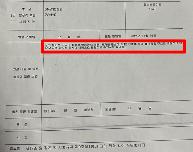 작성자 A씨는 4개월 전 다음 날 일정을 위해 근처에 있는 유명 3성급 호텔을 방문했습니다. 당시 A씨는 객실 내 비치돼있던 생수를 마시려던 중 물이 혀에 닿자마자 정신이 아득해질 정도의 락스 냄새를 맡게 되었습니다. A씨는 곧바로 입안을 헹궜지만 락스가 닿은 혀에는 붉은 반점과 혀 유두가 올라오면서 감각이 없어졌다 전했습니다.