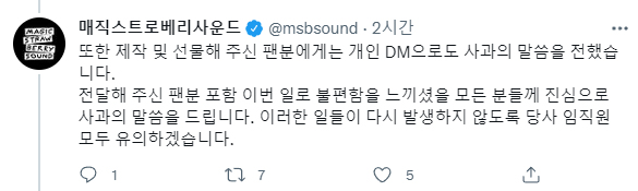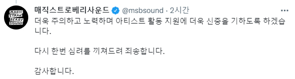이어 "아티스트와 팬 여러분 모두에 대한 예의를 지키지 못한 점에 대해 송구한 말씀 전한다. 또한 제작 및 선물해 주신 팬분에게는 개인 DM으로도 사과의 말씀을 드렸다"고 밝혔습니다.