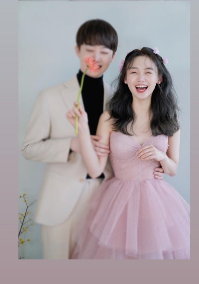 김수민은 남편과 찍은 웨딩 사진도 공개했는데요, 남편의 얼굴은 모자이크 처리했습니다. 남편에 대해서는 "재벌이 아니다"라고만 설명했습니다.
