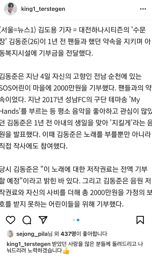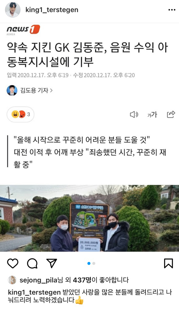 축구선수 김동준 인스타: https://www.instagram.com/king1_terstegen/