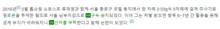 과거 2016년 5월 홈쇼핑 쇼호스트 류재영과 배우 최창엽은 서울 종로구 모텔 등지에서 주사기로 필로폰을 투약한 혐의로 서울 남부지검으로 구속 송치되었습니다.