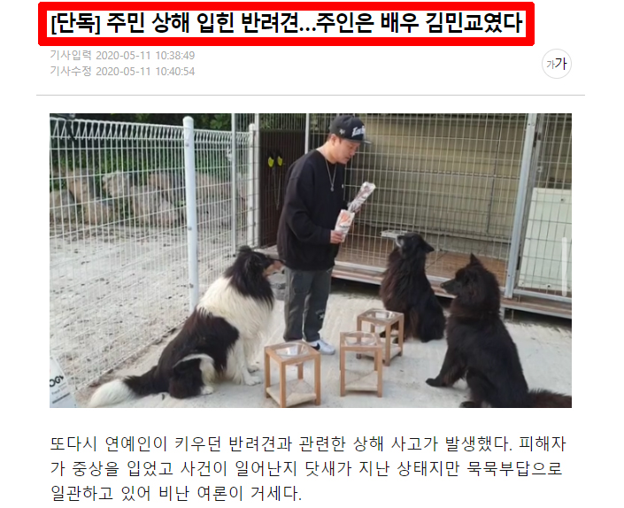앞서 지난 2020년 5월 4일 김민교가 키우던 반려견이 울타리를 넘어 주거지 뒤편 텃밭에 있던 피해자 A씨의 다리와 팔 부위를 물어뜯었습니다.