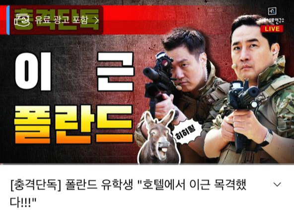 앞서 유튜브 채널 가세연은 "이근이 폴란드 시내의 한 호텔에서 조식을 먹는 모습을 목격했다는 제보가 들어왔다"는 내용의 방송을 진행했습니다.