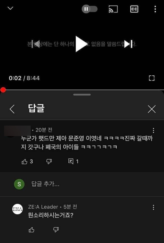 문준영이 BJ 하루 유튜브 채널과 자신의 유튜브 채널에 남긴 댓글도 네티즌 사이에서 화제가 되고 있습니다. (ZE:A Leader)