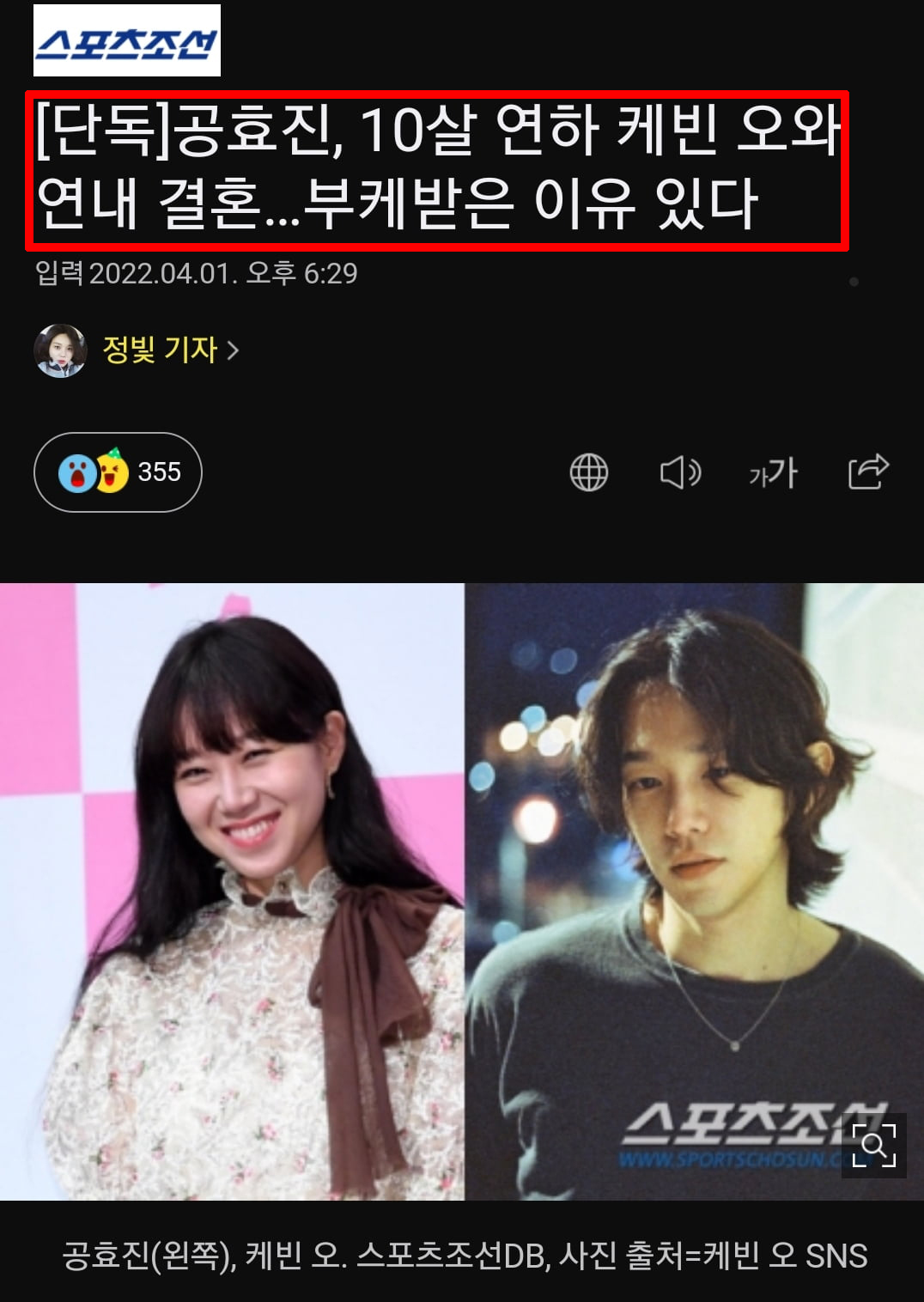 또 공효진은 2020년 3월 자신의 인스타그램에 "이 노래 어째. 달밤에 듣자니 마음이 참"이라는 글과 함께 케빈오의 'Anytime Anywhere" 재생 중인 화면을 올리기도 했습니다. 공효진은 1980년생, 케빈오는 1990년생으로 10살 차이 연상 연하 커플이 탄생했습니다.
