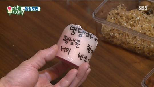 또한 지난 1월 '미운우리새끼'에서는 김준호 집에서 김지민이 준 향초가 공개되기도 했는데요. 향초에는 '댕댕아 평생을 함께 하자. 나의 반쪽'이라고 적혀 있었습니다.