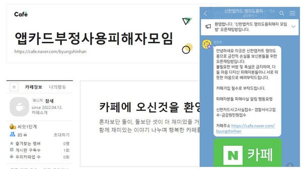 신한카드 사 측이 파악한 피해자는 20여 명이나 실제 피해자 모임 오픈채팅방 인원은 180여 명에 달하며 네이버 카페 온라인 커뮤니티에는 80여 명이 가입되어 있는 것으로 확인되었습니다.
