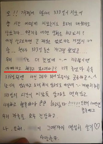 조현수는 이은해의 딸과 함께 한 가족을 꾸리고자 하는 생각까지 엽서에 직접적으로 드러내고 있었습니다. 이은해 조현수 두 사람이 사귄 기간도 현시점에서 계산하면 3년이 넘는 장기간으로 알려졌습니다.