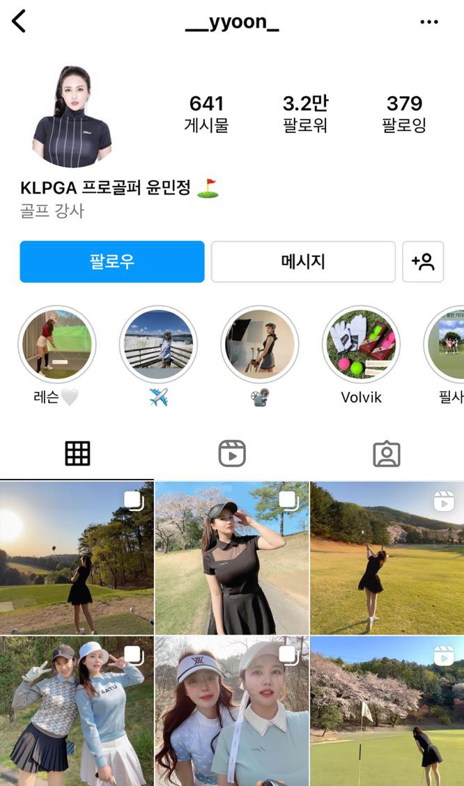 윤민정은 26일 오후 개인 인스타그램을 비공개로 전환했다가 현재는 공개로 다시 전환했는데요. 윤민정은 최근까지 골프 라운딩 사진과 동영상을 올리며 팬들과 소통했습니다.