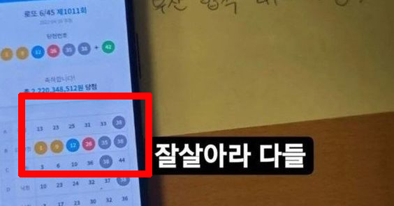 박현우가 공개한 사진에는 지난 16일 발표된 1011회차 로또 복권 구매 당첨 결과가 담겨있었습니다. 핸드폰에 담긴 숫자는 1, 9, 12, 26, 38 + 42라는 당첨 숫자가 선명하게 적혀있었습니다.